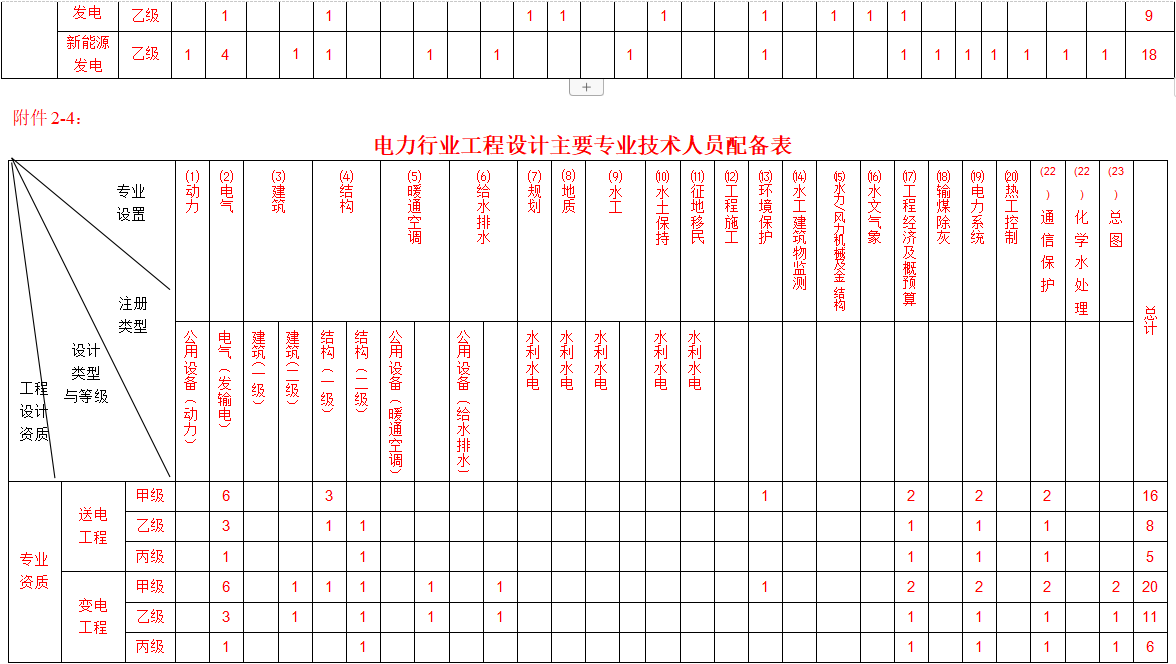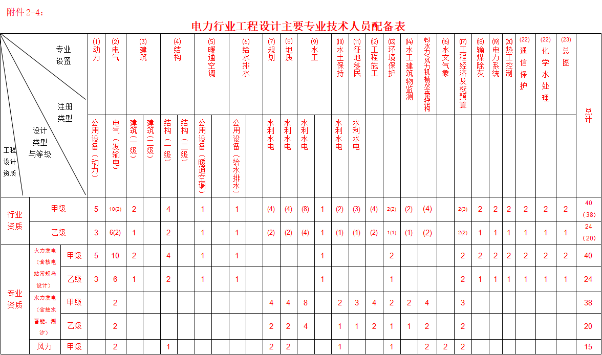 4.行業(yè)資質(zhì)專業(yè)人員配備,括號內(nèi)的數(shù)字為水力水電設計企業(yè)申請行業(yè)資質(zhì)對主要專業(yè)技術人員配備的要求。